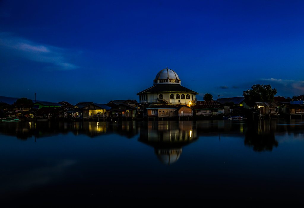 Senja yang menandai datangnya malam, tidak selalu berarti waktu beristirahat. Sebab bagi sebagian orang, itu justru adalah penunjuk waktu untuk dimulainya aktifitas. seorang pemancing dengan ditemani oleh anak lelakinya tengah mencoba peruntungan, sebab konon ikan-ikan lebih agresif di malam hari.