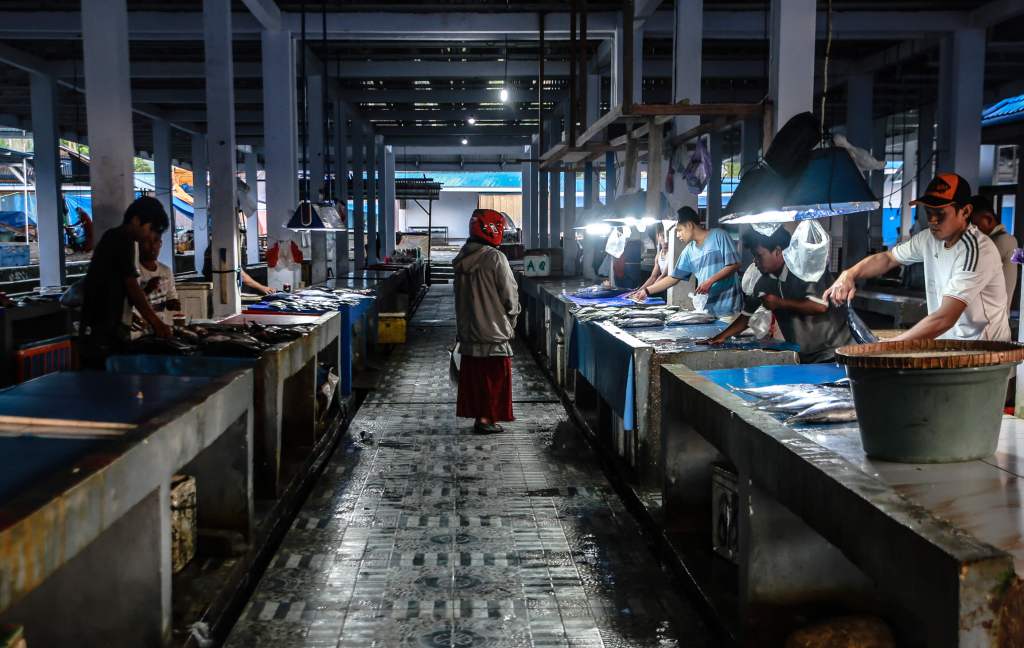 Lapak penjual ikan di dalam kompleks Pasar Baru Poso. Hampir pukul 8 pagi, namun aktifitas belum terlihat ramai. Relokasi para pedagang dari pasar lama yang terletak di tengah kota ke kompleks Pasar Baru ini hingga kini masih meninggalkan polemik. Sejumlah pedagang enggan dipaksa pindah. Ada yang karena alasan jarak, dan ada pula yang enggan pindah karena belum kebagian tempat. Lapak Ikan di pasar baru ini juga masih terlihat lenggang. Banyak meja-meja yang ditinggal kosong, karena penjualnya lebih memilih menjajakan ikan di tempat lain. Namun belakangan, seiring dengan semakin ramainya pengungjung di Pasar baru ini, semakin banyak pula pedagang yang memutuskan masuk.